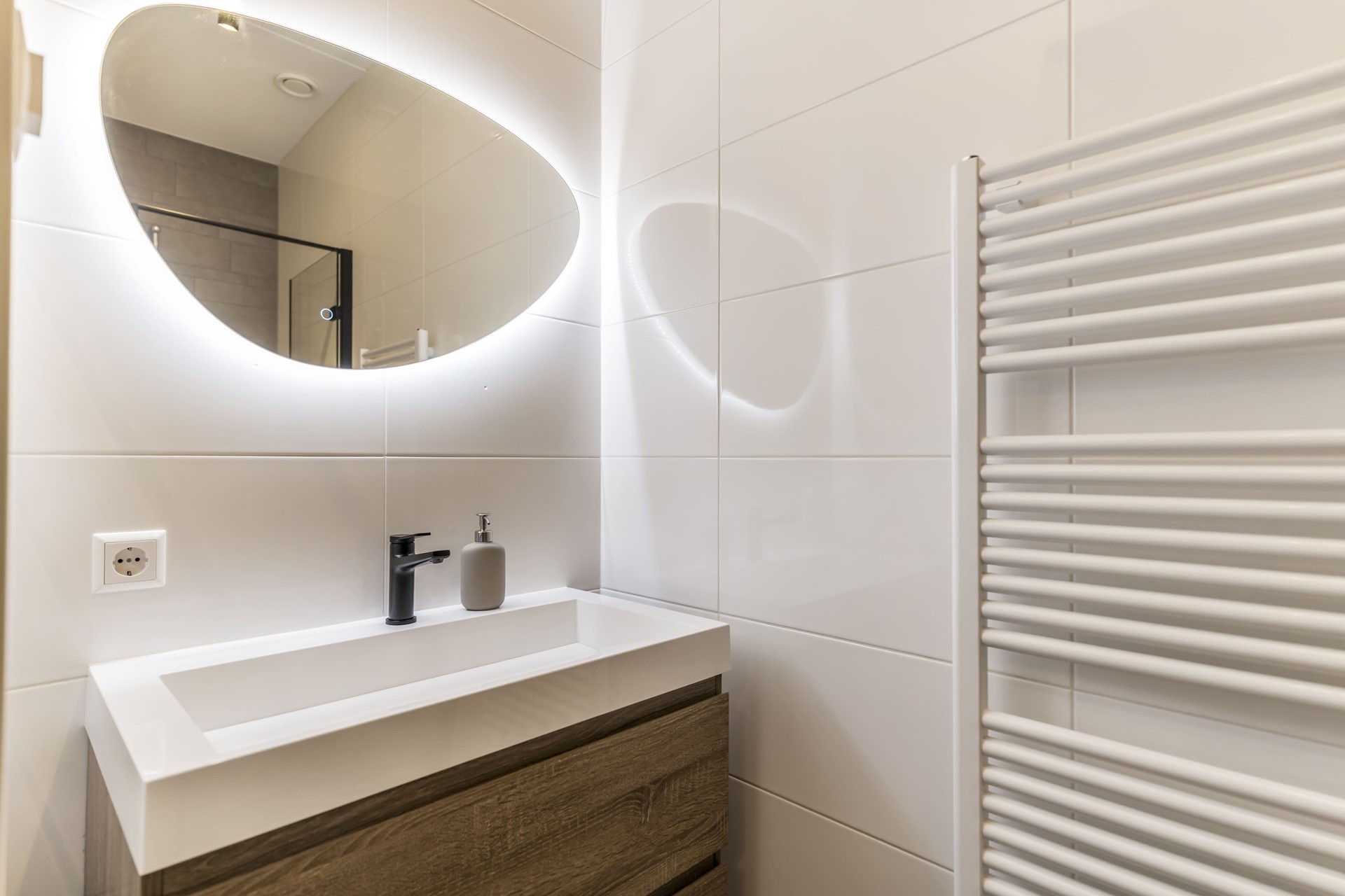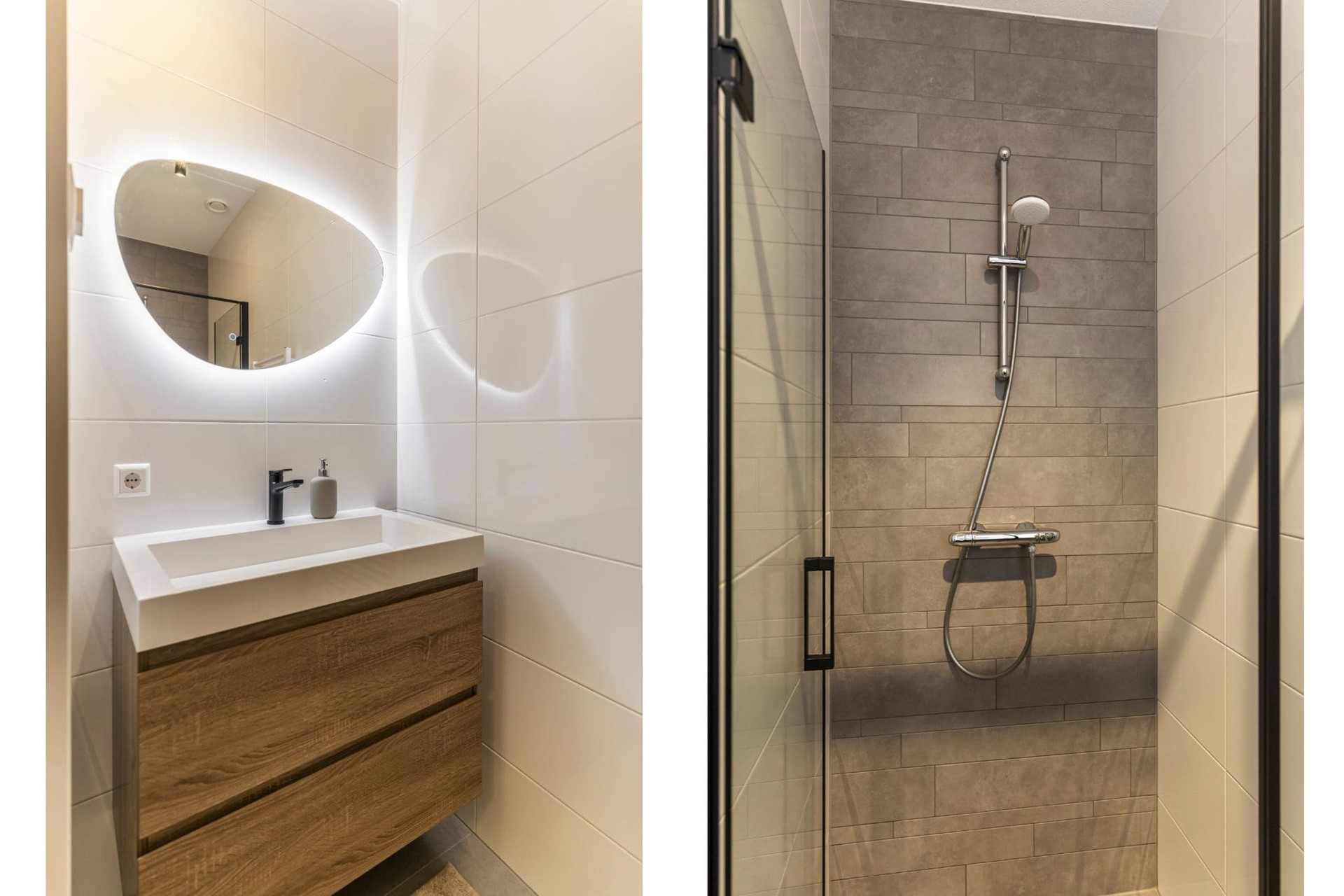 Aansluitend aan de slaapkamer bevindt zich de moderne badkamer, deze is netjes afgewerkt en voorzien van een douche en wastafel.
