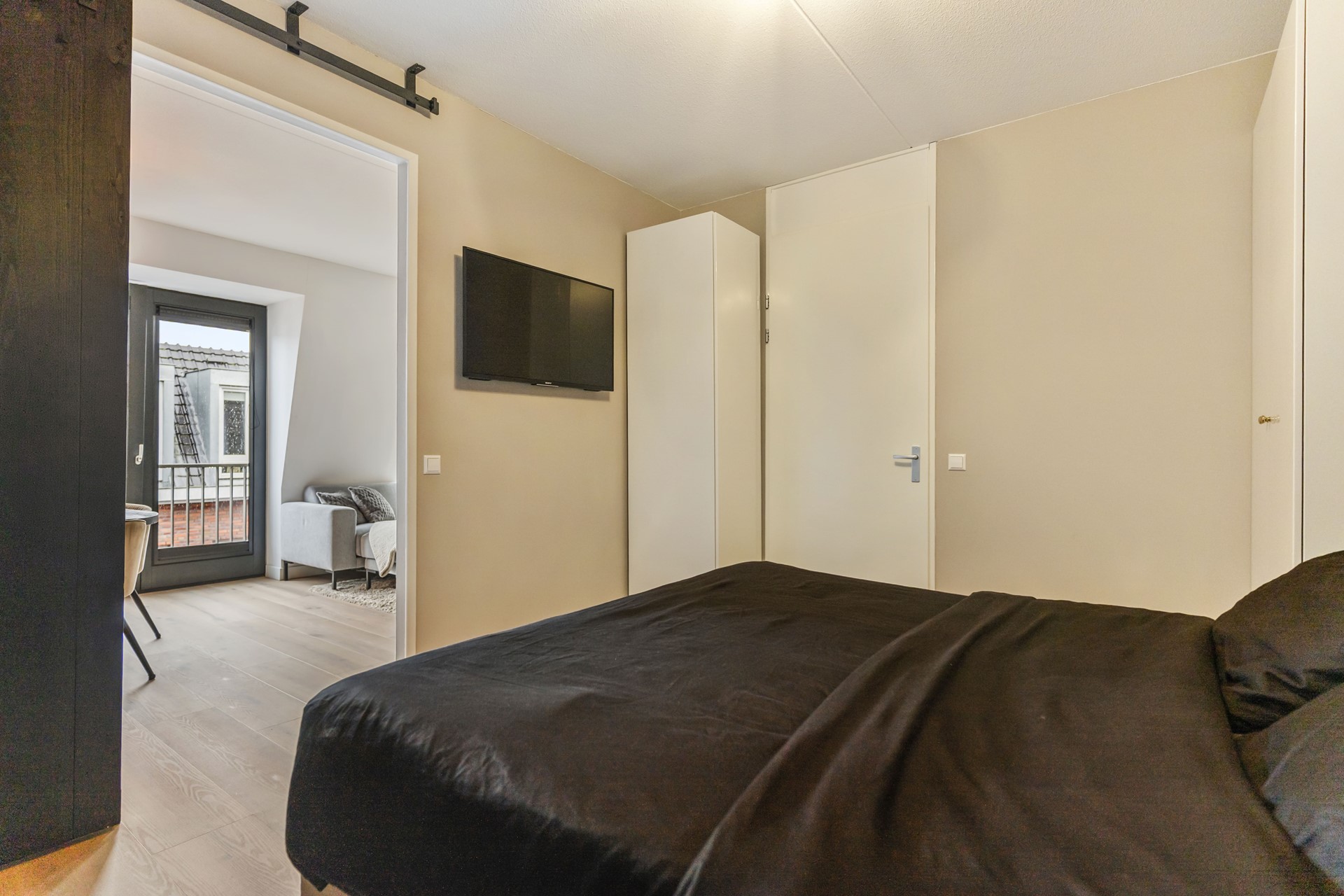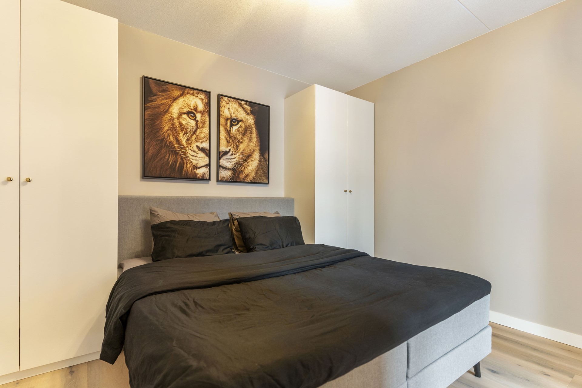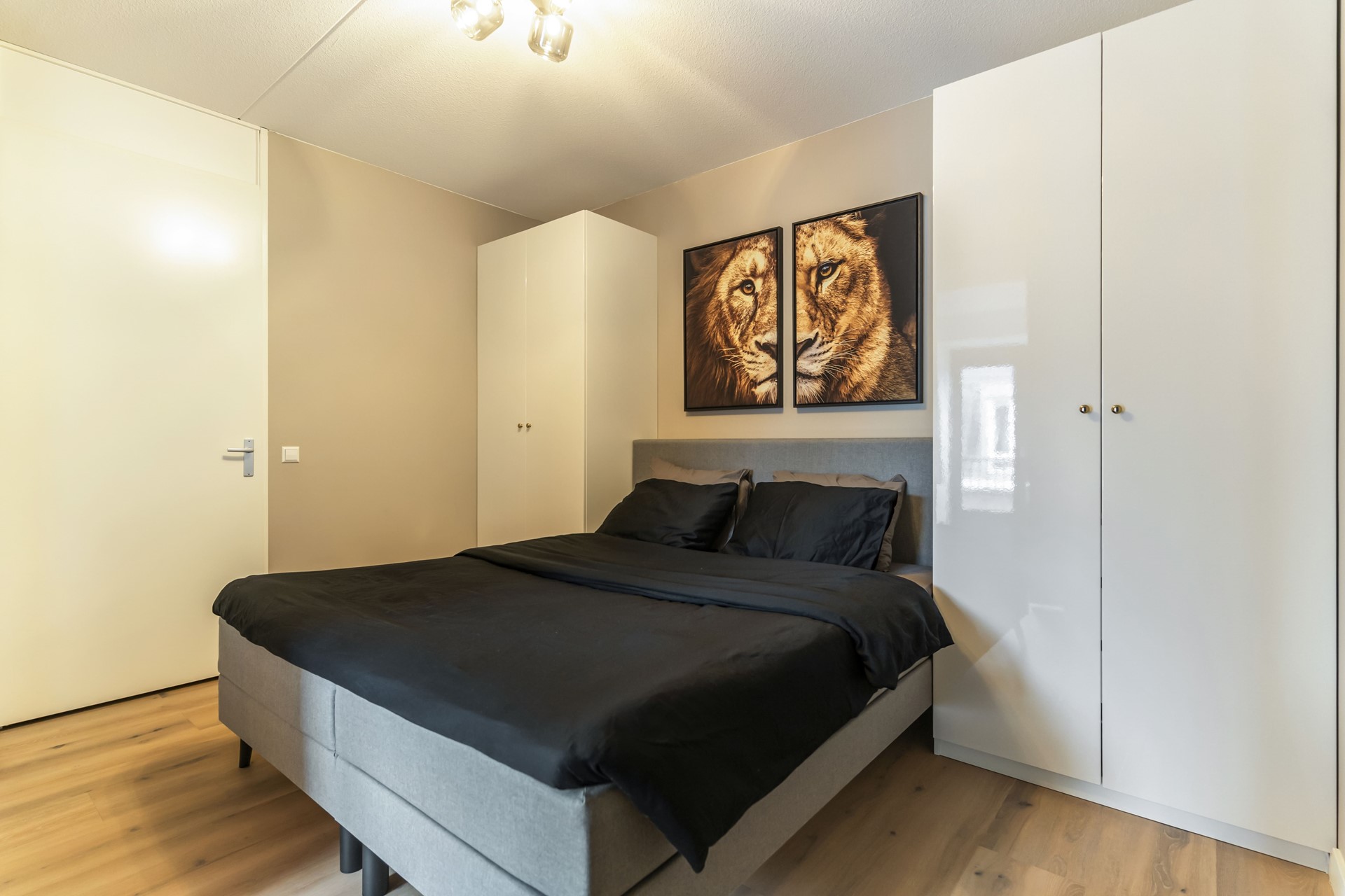 Via de woonkamer kom je binnen in de ruime slaapkamer, deze is rustig gelegen en biedt voldoende ruimte voor een groot bed én kastruimte.
