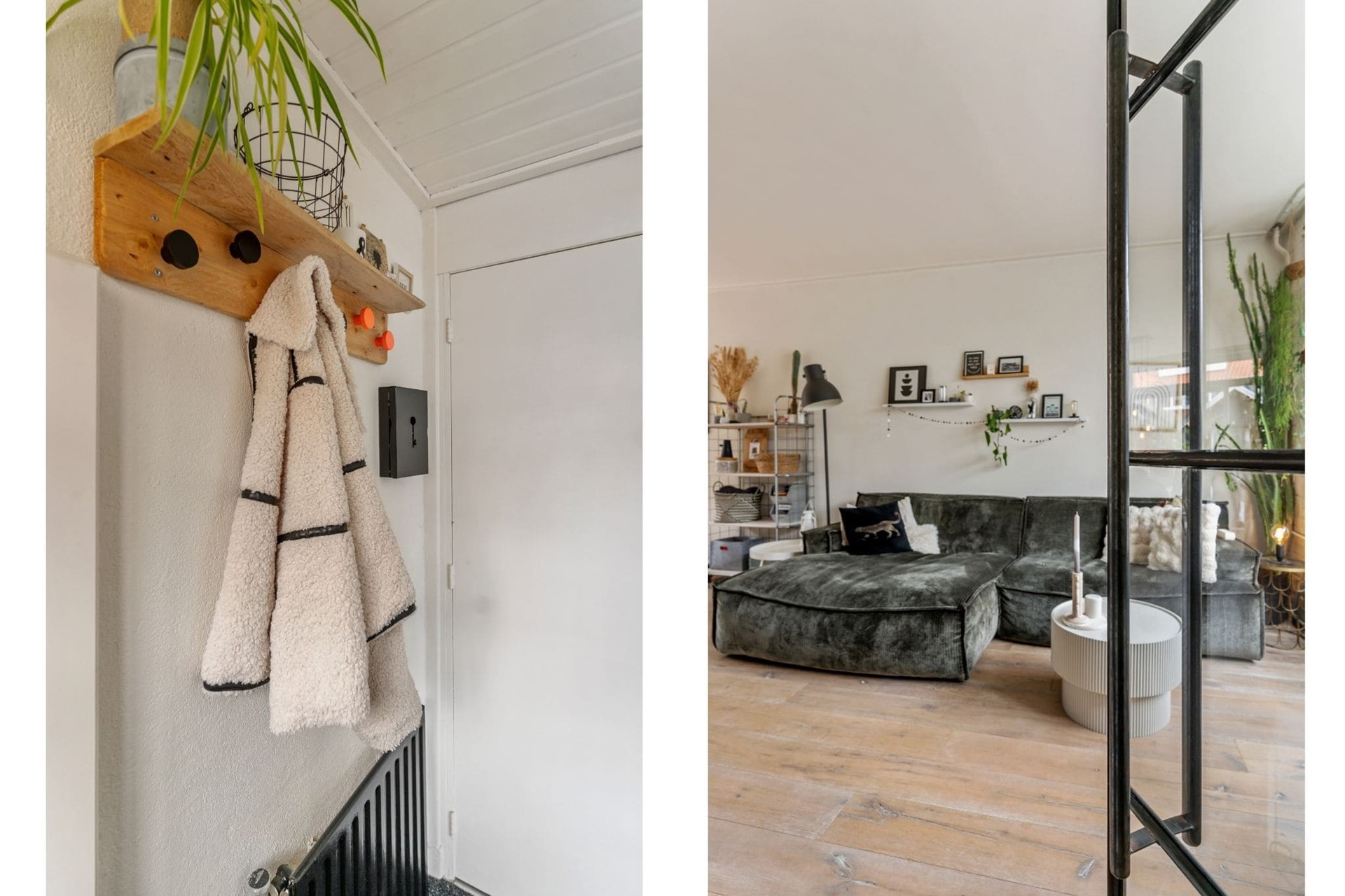 Aankomst middels de verzorgde voortuin van de woning waar een fijne zitplek is gerealiseerd. Parkeren kan hier voor de deur. Direct in de hal is er ruimte voor de jassen en ook bevindt zich hier het toilet.
