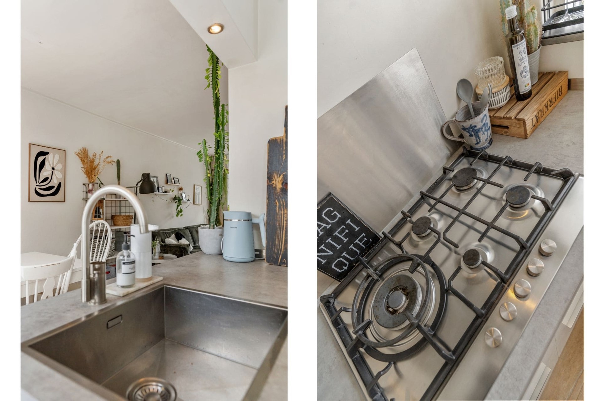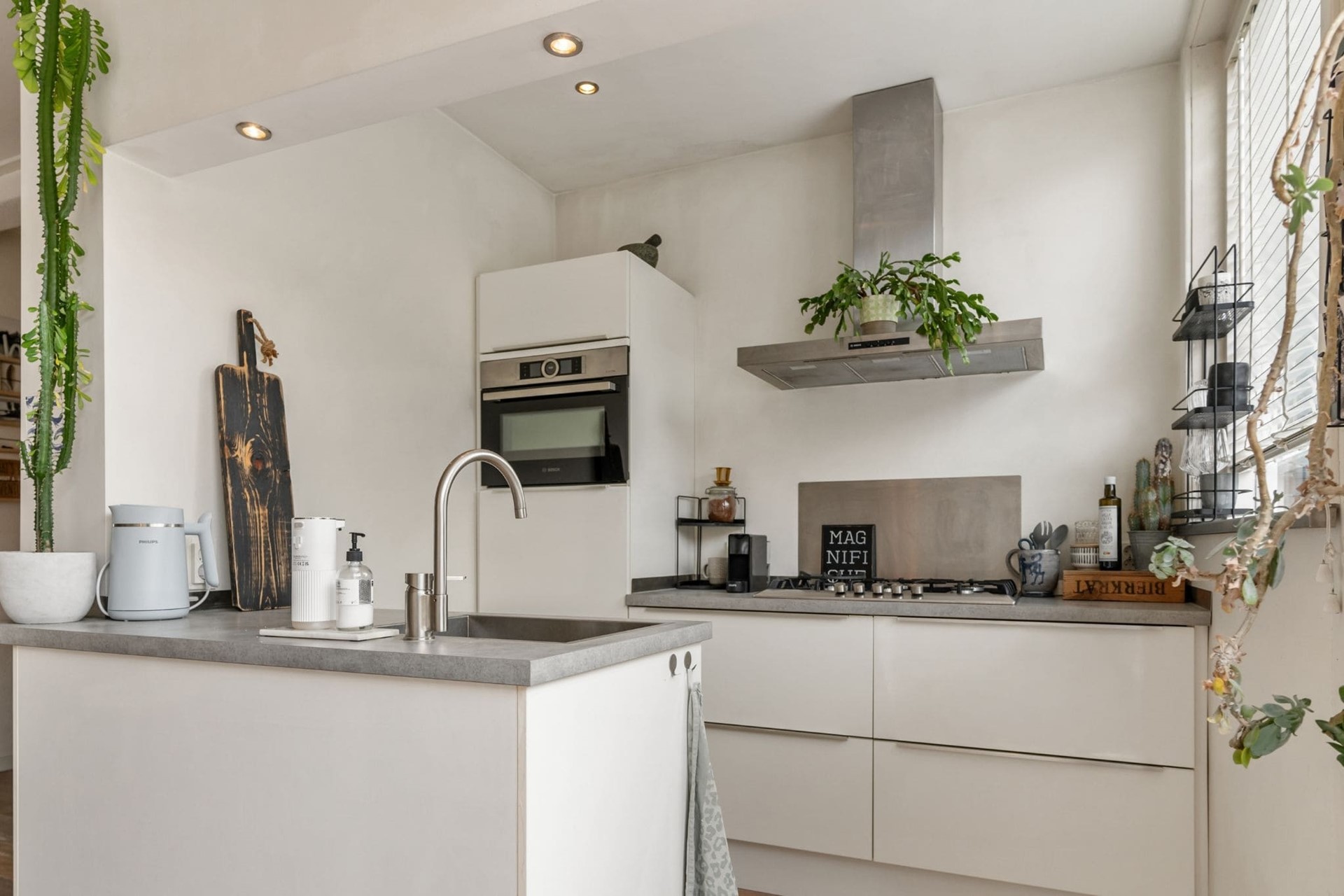 Goed doordacht en praktisch ingericht: zo’n huis wil toch iedereen? De moderne, half open keuken – wat een plaatje! – is geplaatst in 2015 en voorzien van een spoeleiland, vijfpits-gasfornuis met afzuigkap, combi-oven, vaatwasser en koelkast.
