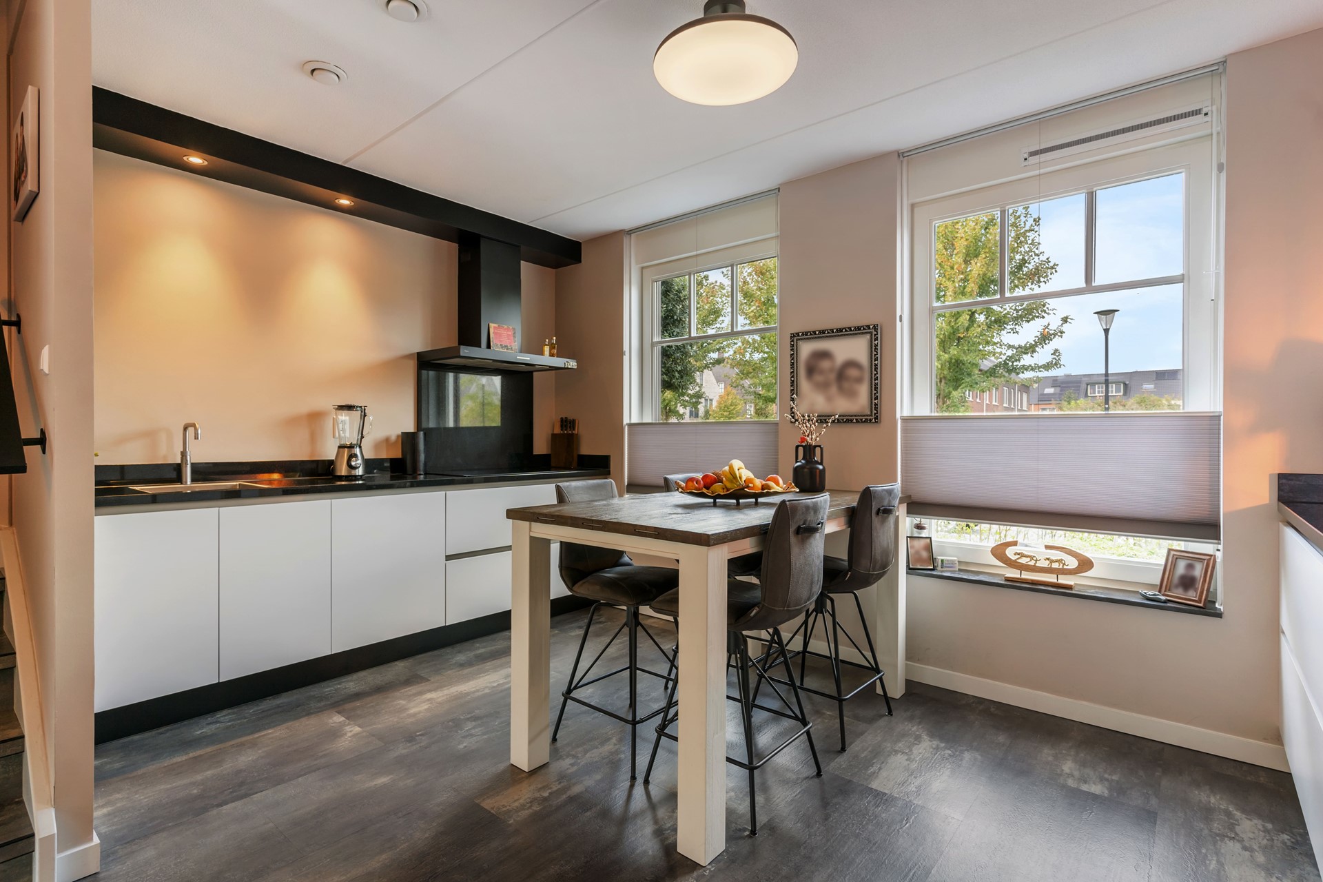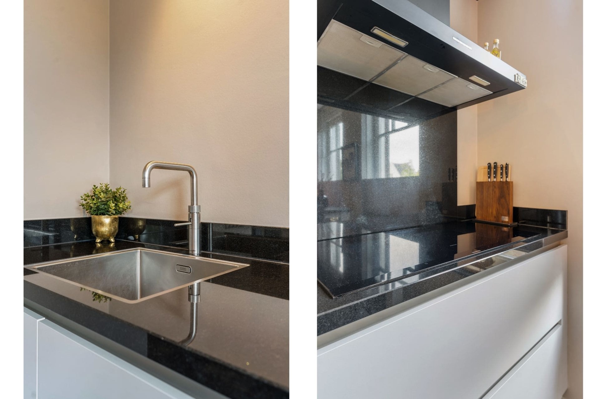 Aan de voorzijde van de woning vind je de moderne, ruime open keuken, strak afgewerkt met een natuurstenen keukenblad en uitgerust met hoogwaardige Siemens-inbouwapparatuur, onder andere een 90 cm inductiekookplaat, een Quooker en een waterfilter. De keuken biedt de mogelijkheid om een keukentafel neer te zetten. Een fijne plek voor iedereen die van koken houdt.