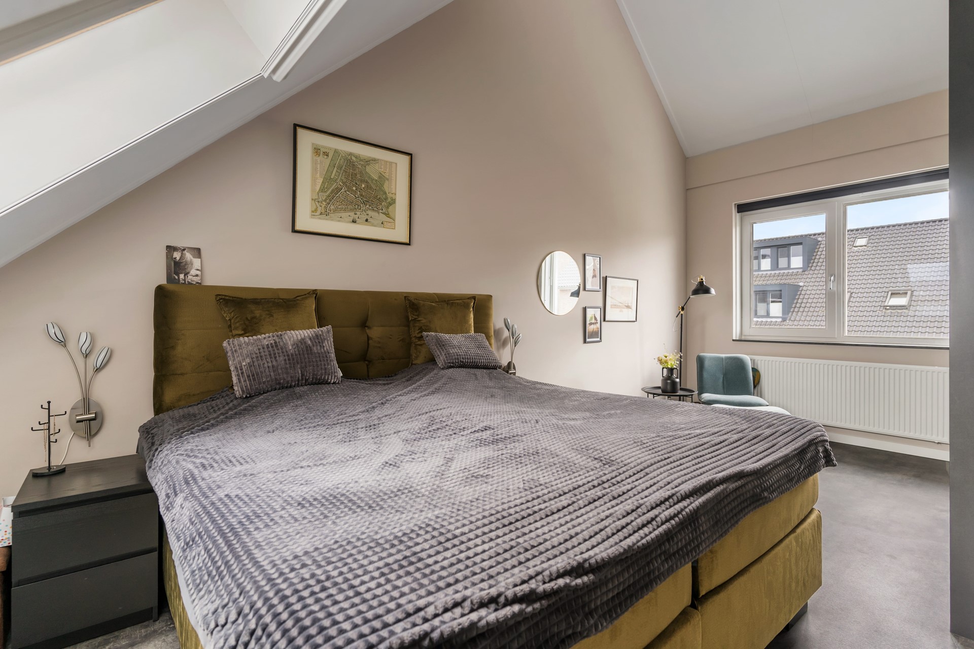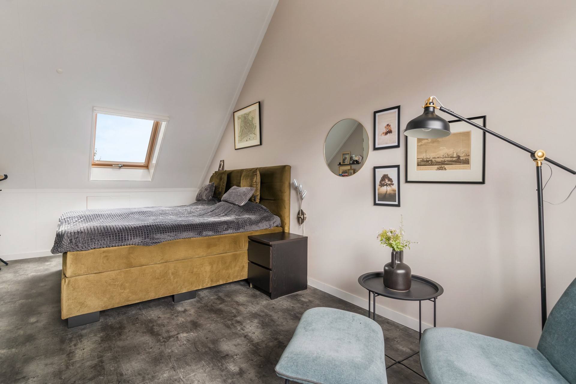 De huidige masterbedroom heeft een nokhoog plafond, waardoor de kamer zeer ruim oogt.