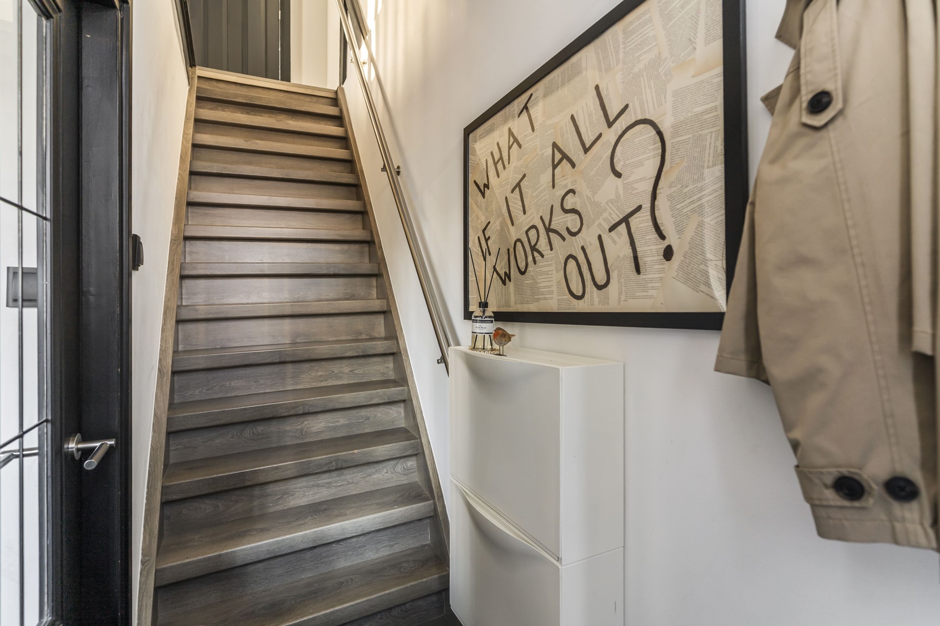 Binnenkomst in de hal van de woning met ruimte voor de jassen en schoenen. Tevens treft u hier de trapopgang naar de eerste verdieping en de meterkast.