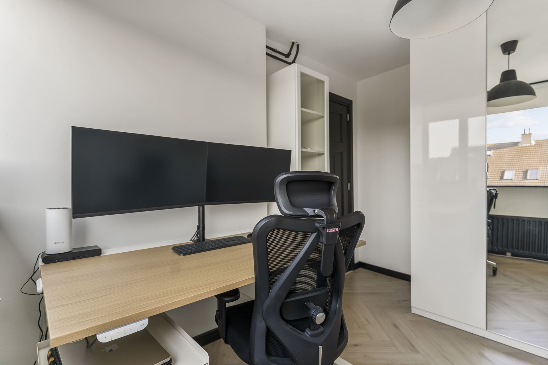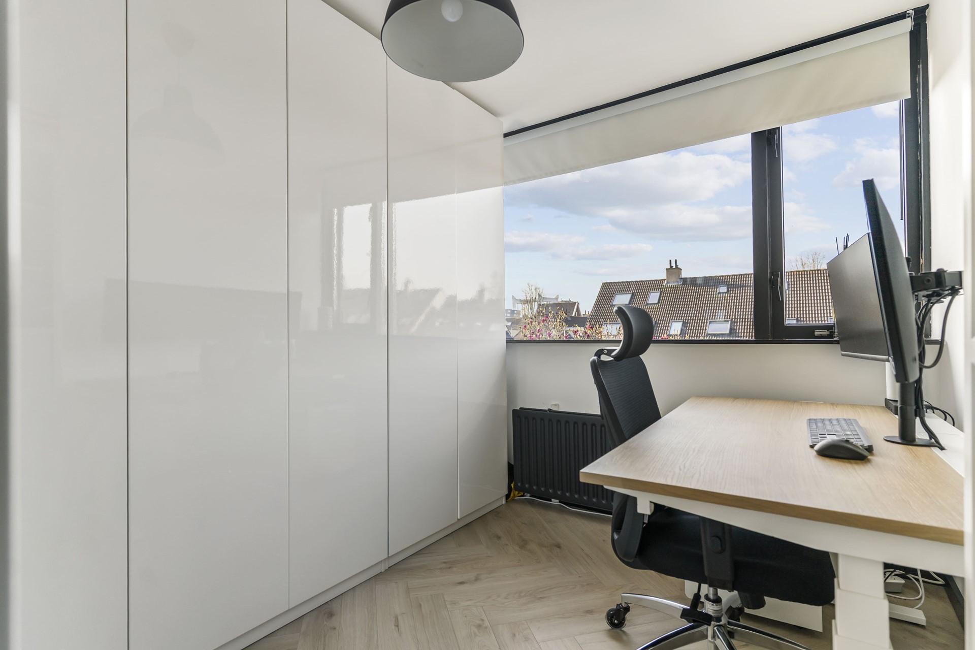 Slaapkamer lll, tevens gelegen aan de voorzijde van de woning, heeft een afmeting van circa 2,47m x 2,12m en wordt momenteel gebruikt als werkplek.
